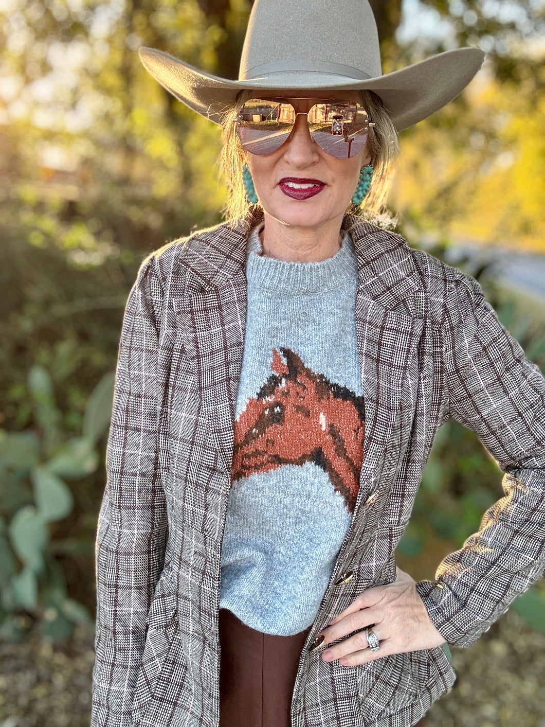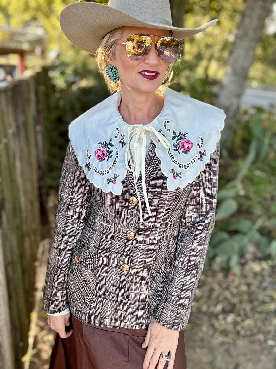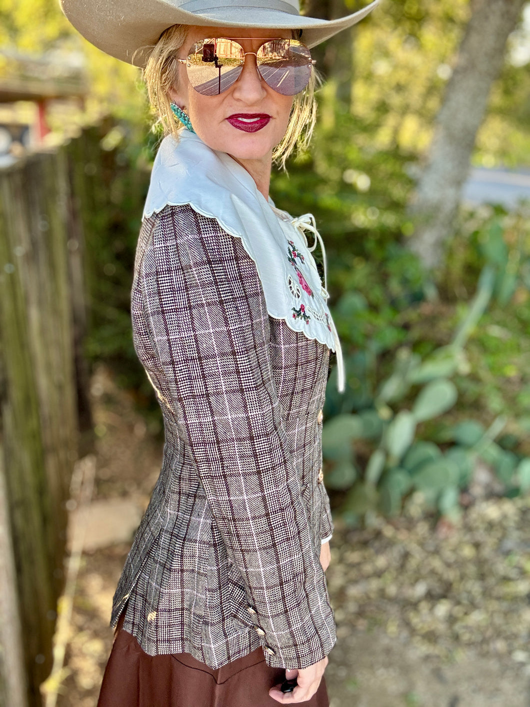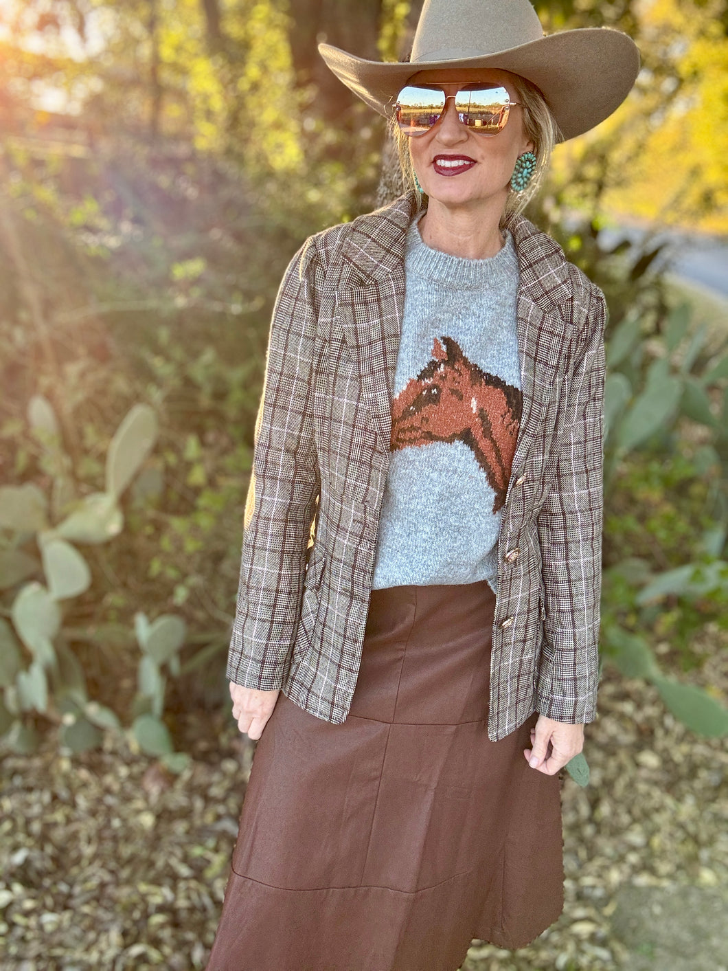 The Bounty blazer brings timeless style with a modern twist. This tailored tweed jacket features gleaming gold buttons and practical front pockets, perfect for dressing up any outfit. Fully lined for comfort and durability, it's a classic wardrobe essential that works as hard as you do—whether you're conquering the office or commanding a room. Effortlessly chic, endlessly versatile.