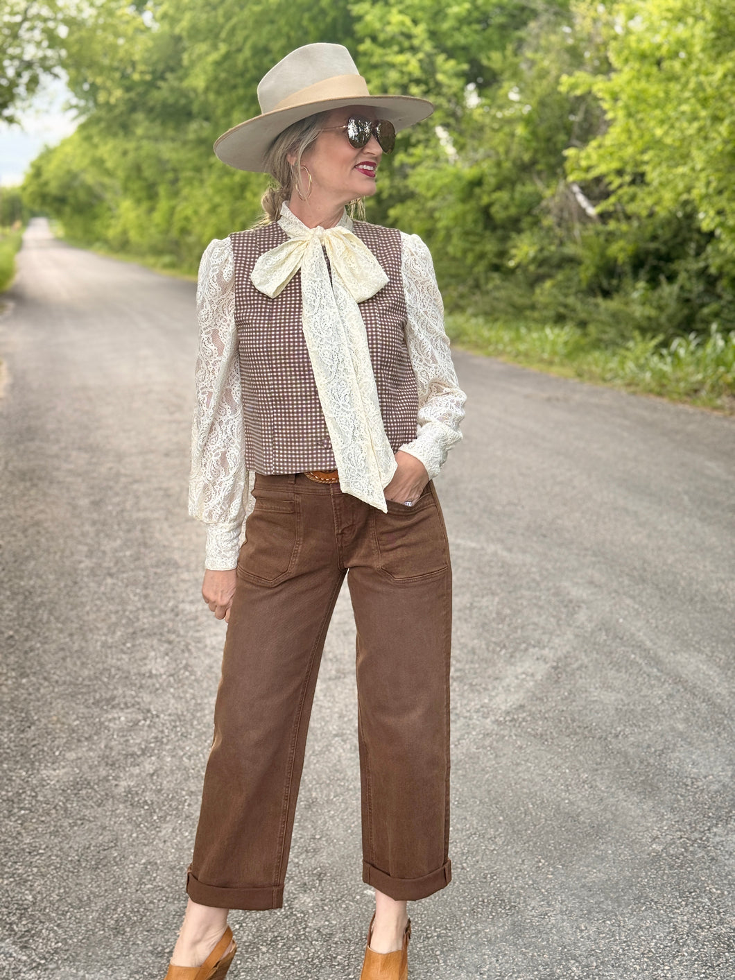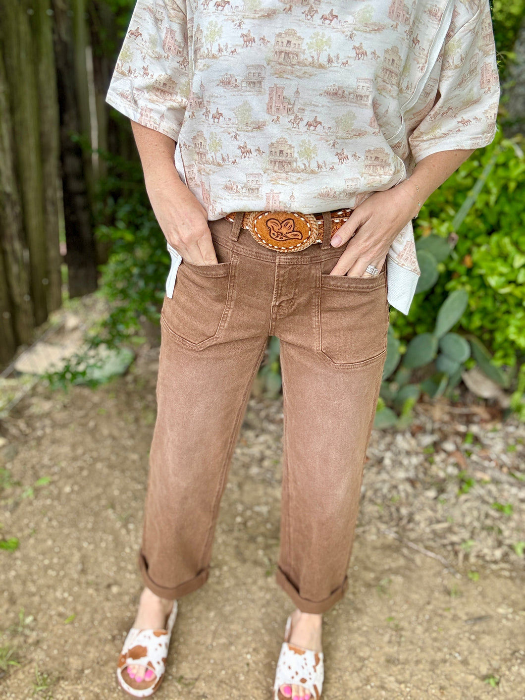 Elevate your style with The Coffee jeans! Featuring a trendy ankle crop and wide leg design, these high-rise jeans offer both comfort and flair. The deep front pockets provide practicality, while the washed brown color adds a touch of warmth to any outfit. Unroll the cuffs for a versatile look that inspires confidence!
