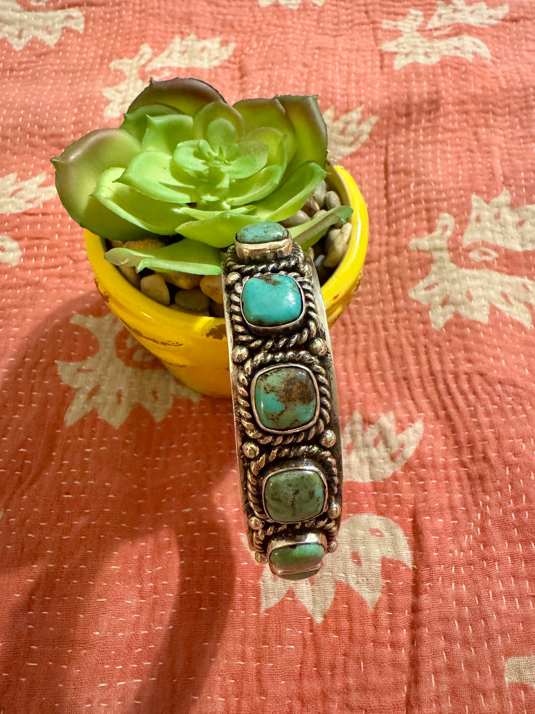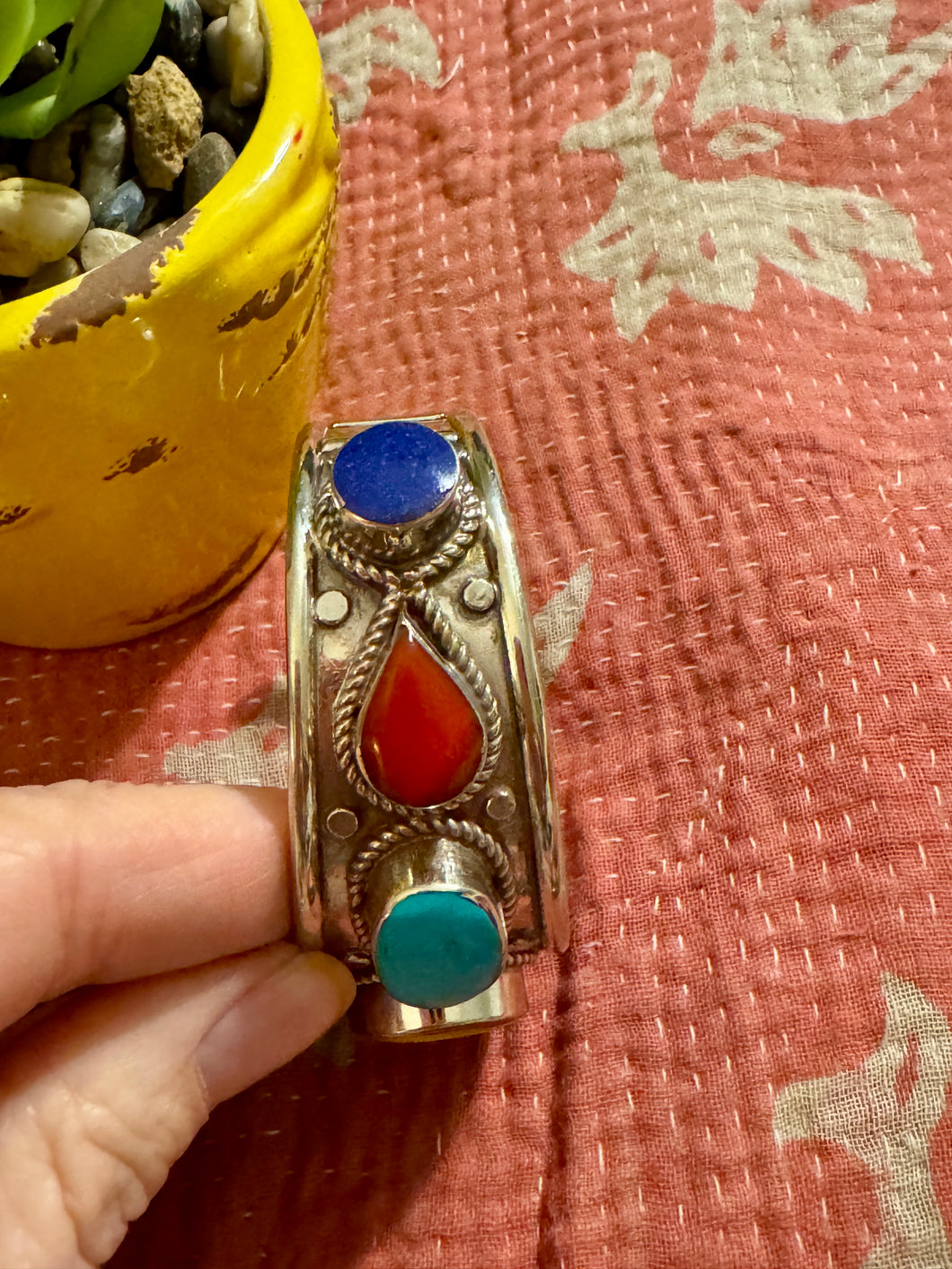 thin cuff is approx .5" wide and about 2.25" across for wrist ~ can be adjusted