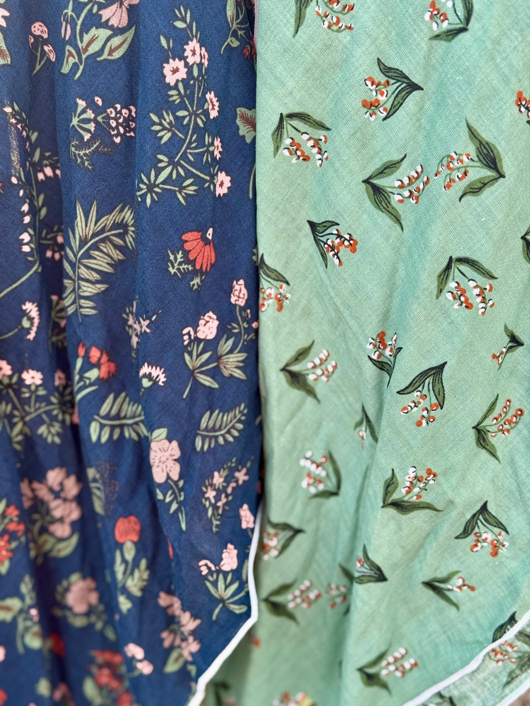 Wrap yourself in botanical bliss with our charming cotton neck scarves! Choose from two gorgeous floral prints that bring a pop of color to any outfit. At a perfect 26"x26", these versatile squares work beautifully as a neck scarf, headwrap, or styling accent. Lightweight and breathable cotton makes them ideal for layering through every season—spring freshness, summer vibes, fall warmth, or winter coziness. A playful way to express your style, no matter what the calendar says!
