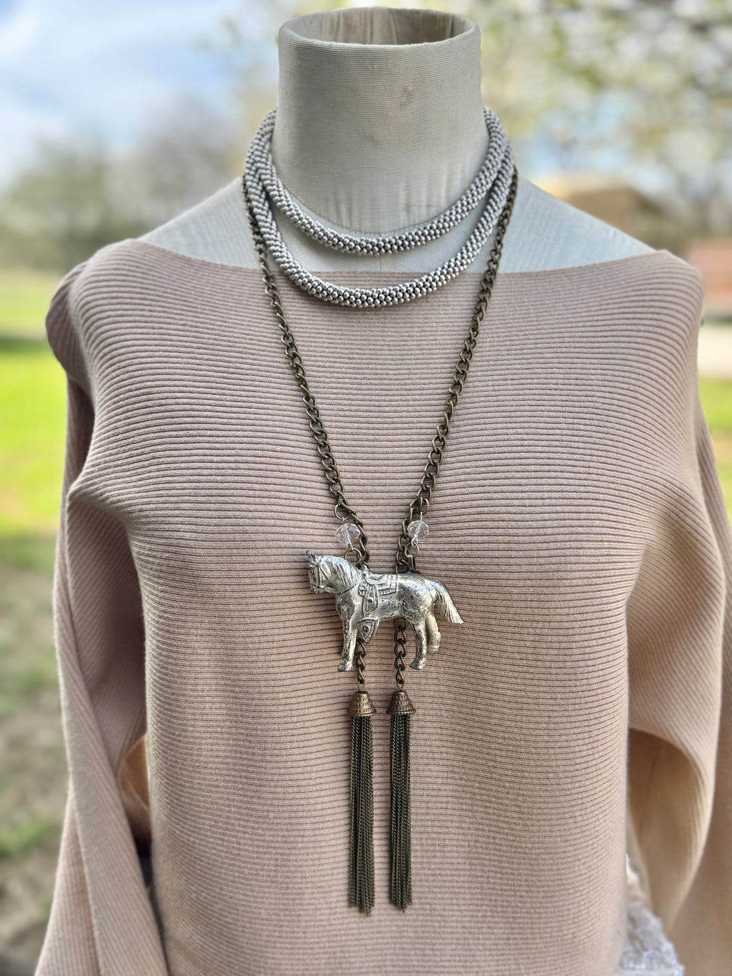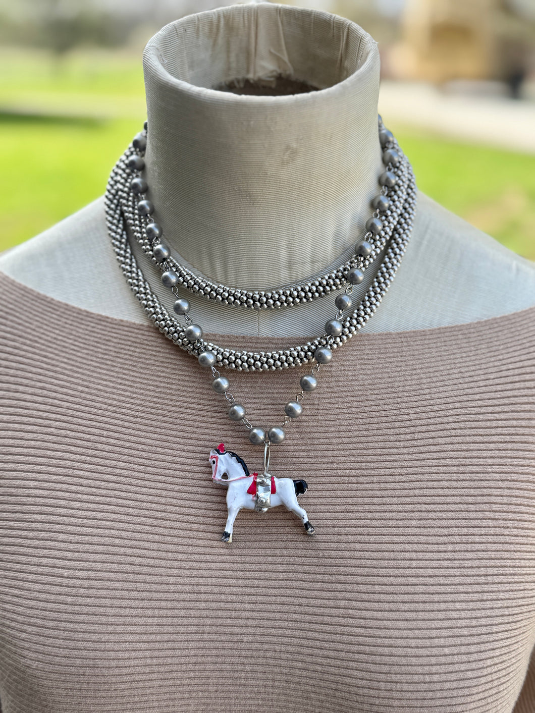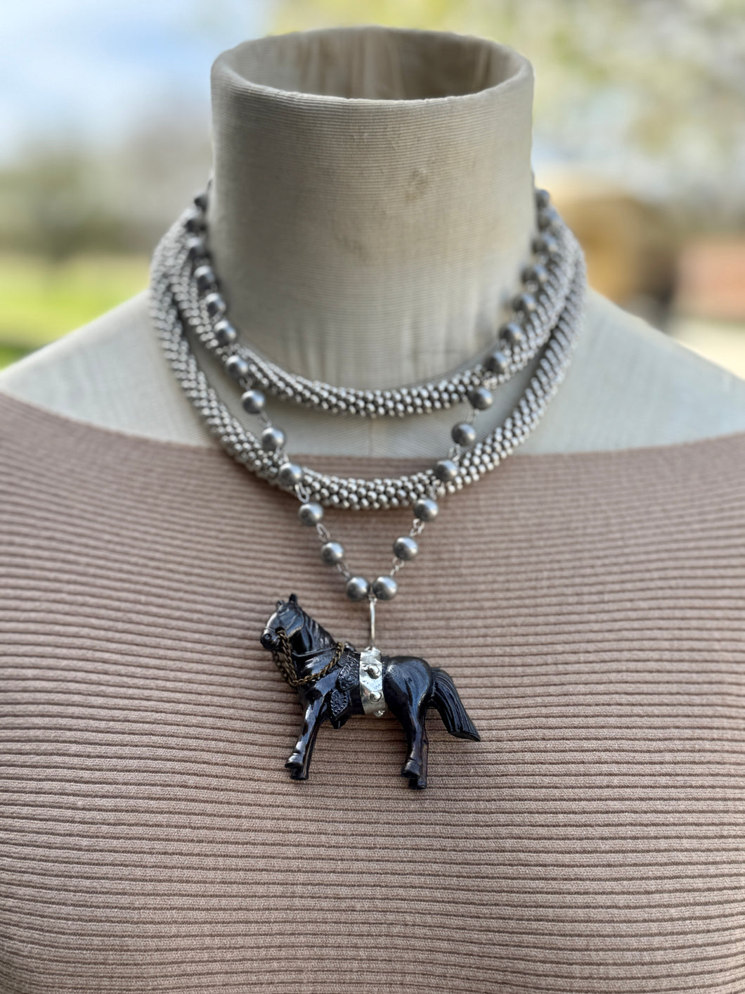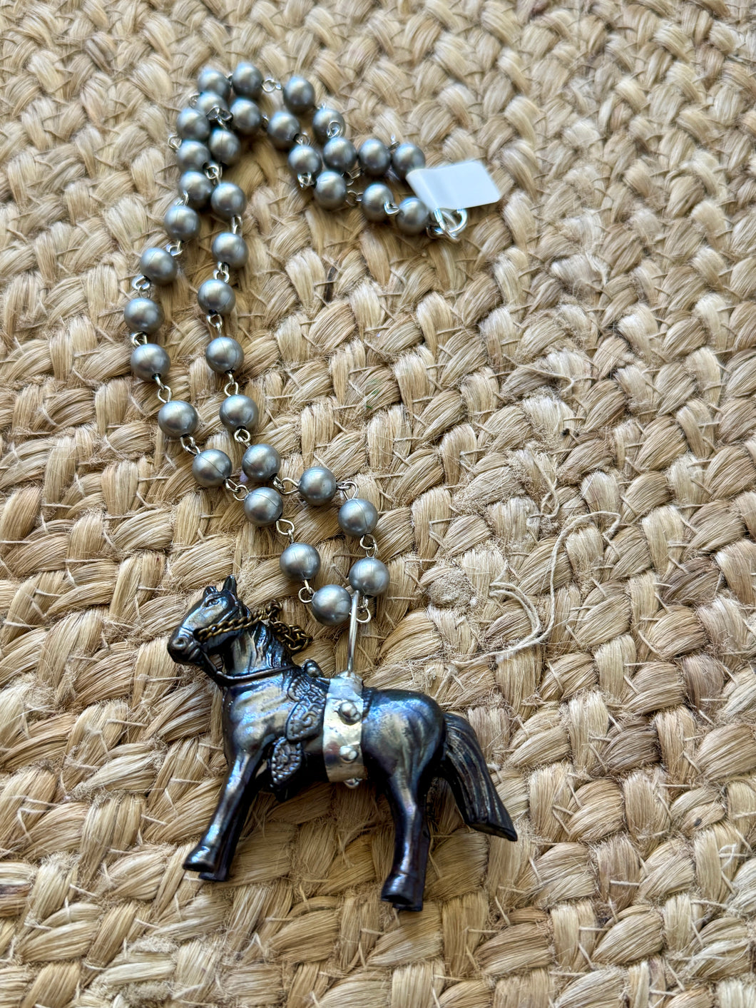 Each piece tells a story. These one-of-a-kind handmade vintage horse necklaces blend timeless equestrian charm with artisanal craftsmanship. Featuring unique details and authentic vintage-inspired design, every necklace is individually created to celebrate your love of horses. Perfect for collectors, equestrian enthusiasts, or anyone seeking a distinctive statement piece that won't be found anywhere else.