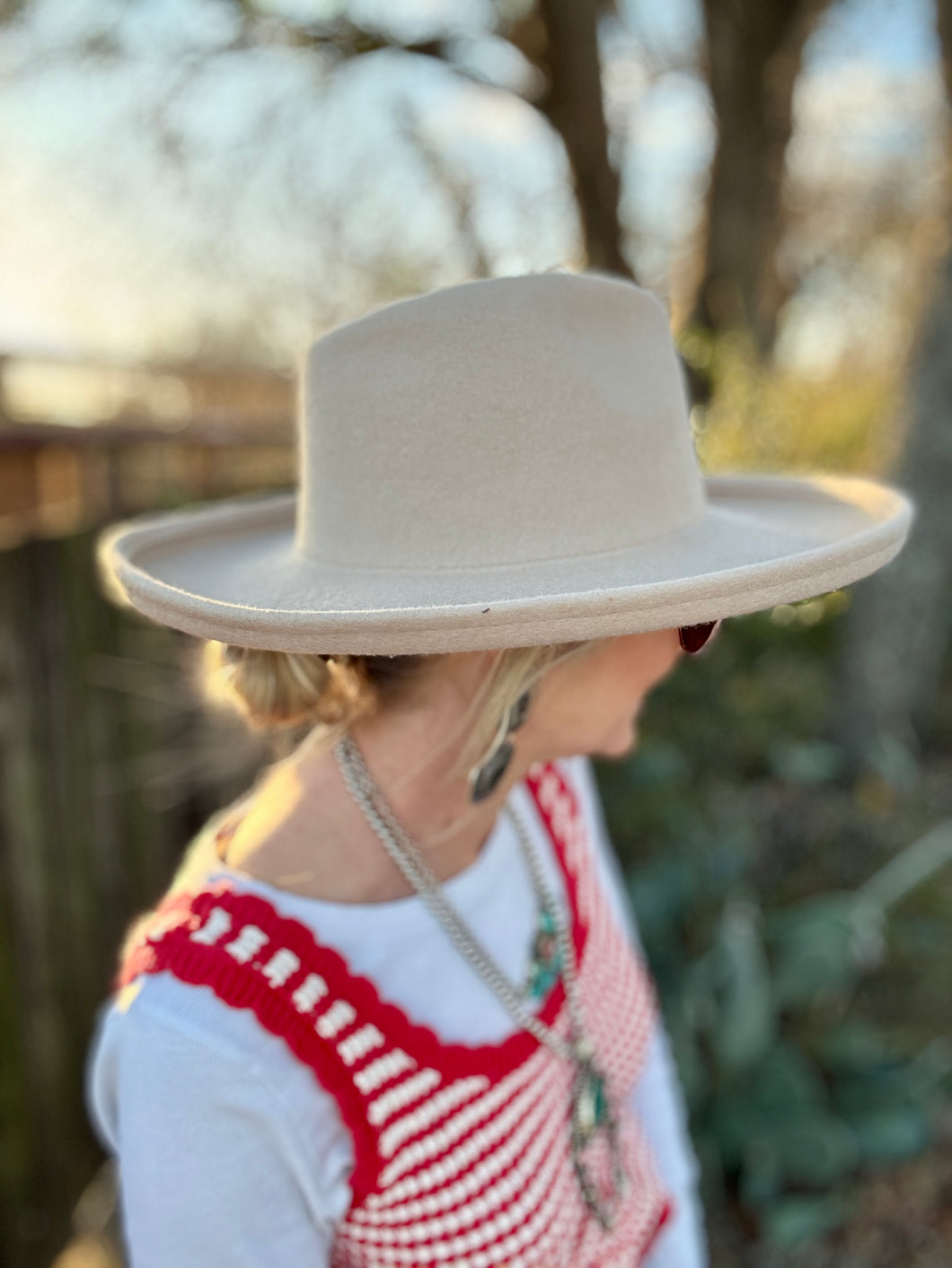 The Hanny hat is your go-to accessory for effortless style. Crafted from quality felt with a charming rolled edge brim, this hat brings vintage-inspired flair to any outfit. The adjustable interior band ensures a perfect fit for everyone, while the neutral color palette makes it easy to pair with your favorite looks. Whether you're heading out for a casual day or dressing up for something special, The Hanny hat adds that playful finishing touch.