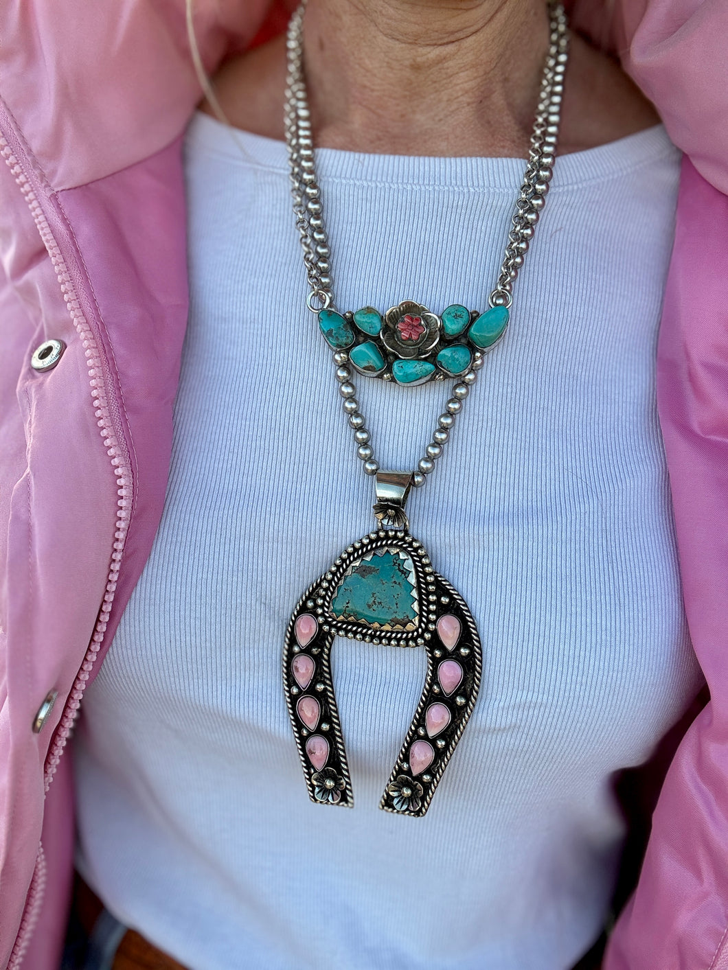 Embrace the perfect blend of earthy elegance with The Harmony necklace! This charming piece features genuine turquoise stones nestled in warm German silver, paired with an adorable hand-carved red coral rose that adds a pop of personality. The adjustable chain lets you find your perfect fit, whether you're layering it with other favorites or wearing it solo. A playful twist on timeless gemstone jewelry that celebrates natural beauty and boho vibes.