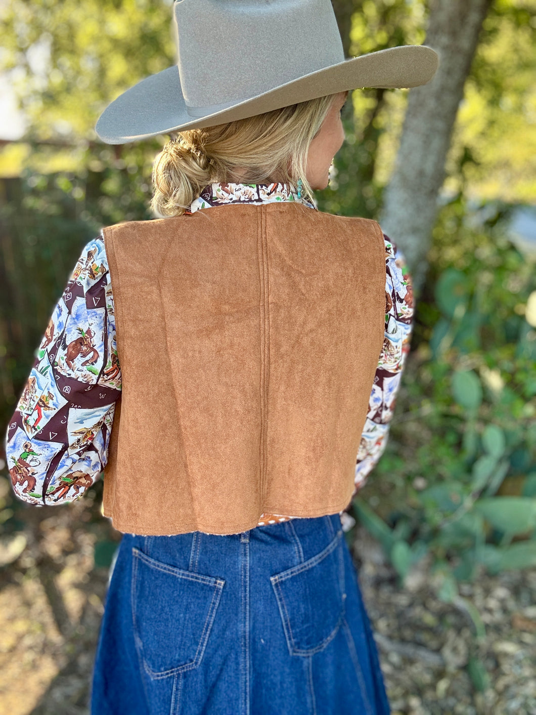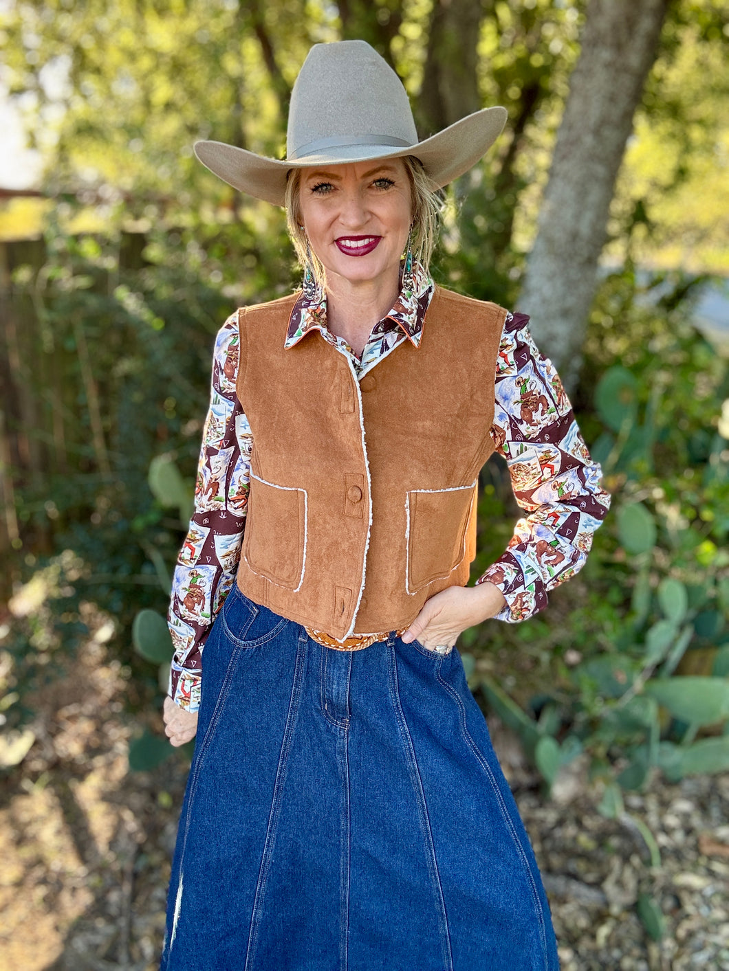 Layer up with The Buckskin Vest—your new go-to for effortless style! This lightweight beauty features a soft suede-like exterior paired with cozy sherpa lining to keep you warm without the bulk. The classic button-up front and functional pockets make it perfect for throwing on over anything. Whether you're heading out for adventure or just vibing around town, this waist-hitting vest strikes the perfect balance between comfort and cool.