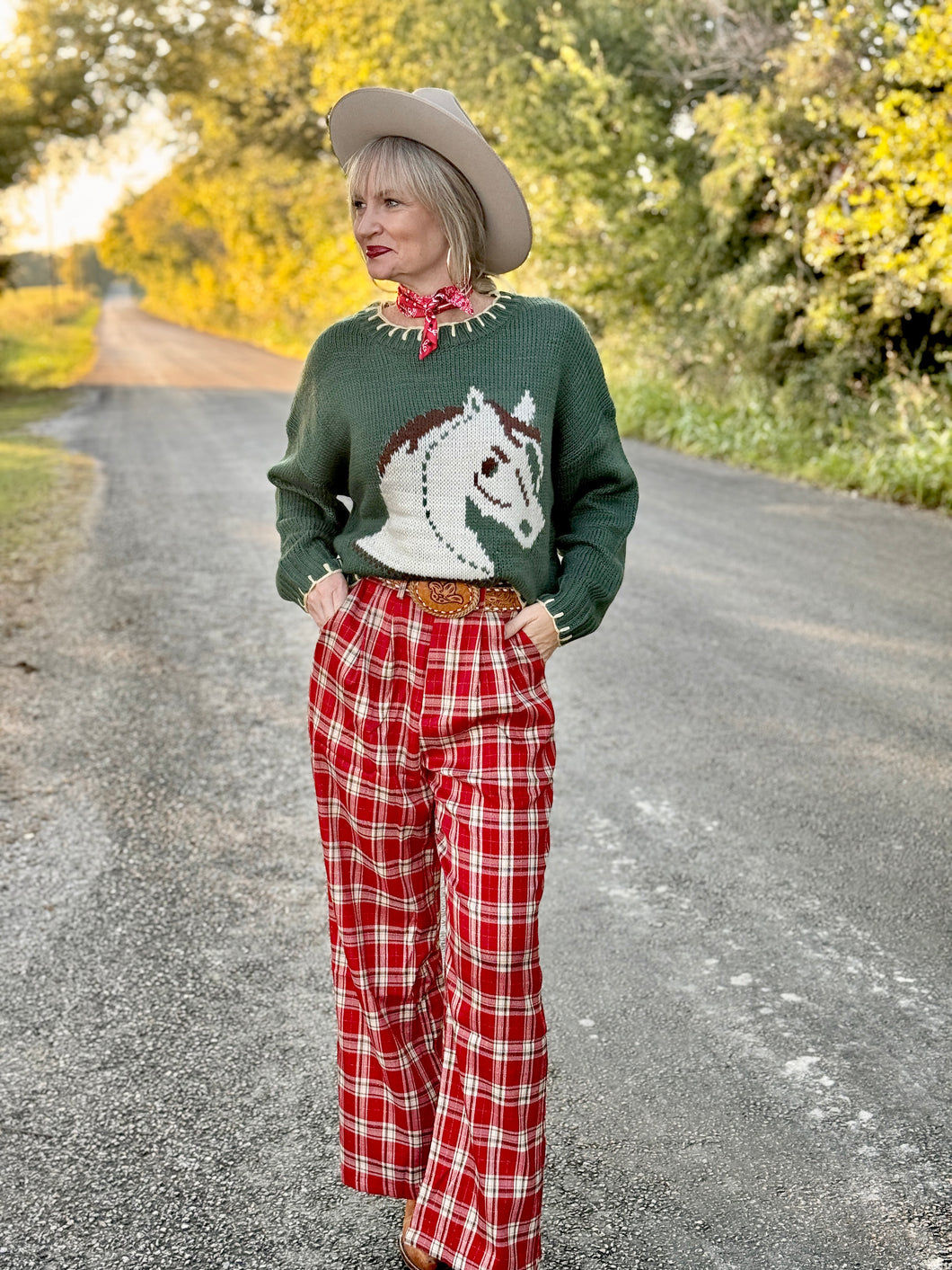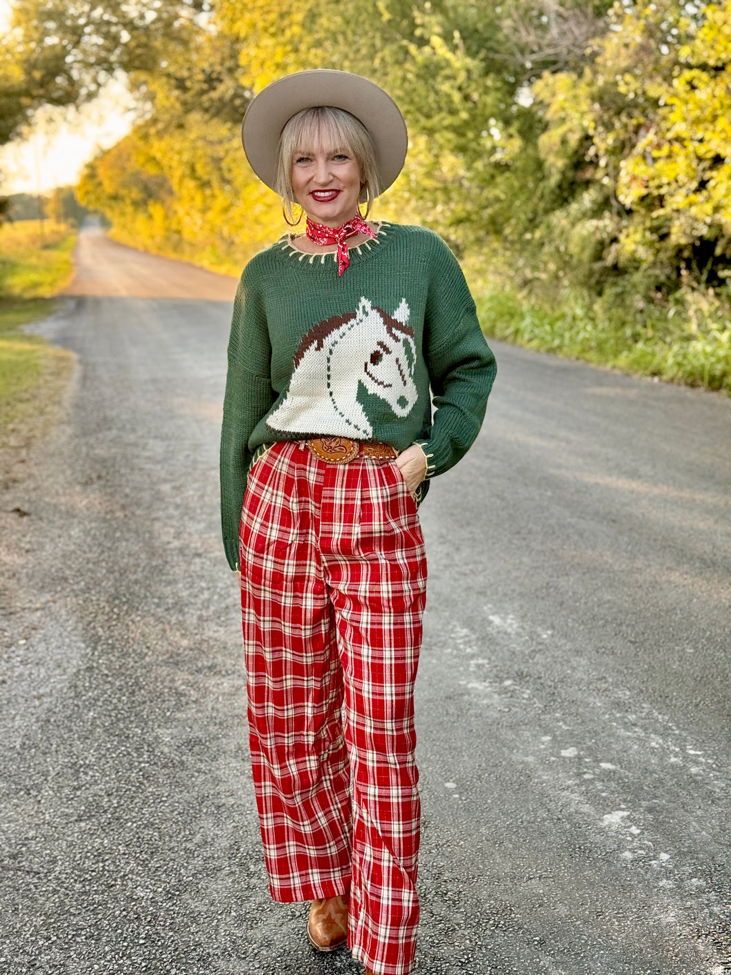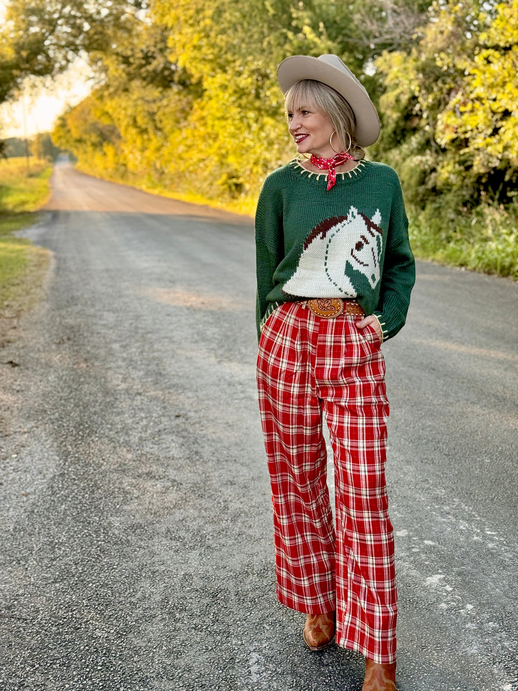 Deck the halls in style with The Holly Plaid pants—your new festive favorite! These pleated beauties feature a classic holiday plaid pattern that brings cheerful charm to any seasonal look. The structured pleats add sophisticated movement and flattering dimension, while the timeless design works perfectly for holiday parties, family gatherings, or just spreading winter cheer. Whether you're dressing up or keeping it casual, these pants deliver that perfect blend of festive flair and everyday wearability. Get ready to turn heads this holiday season!