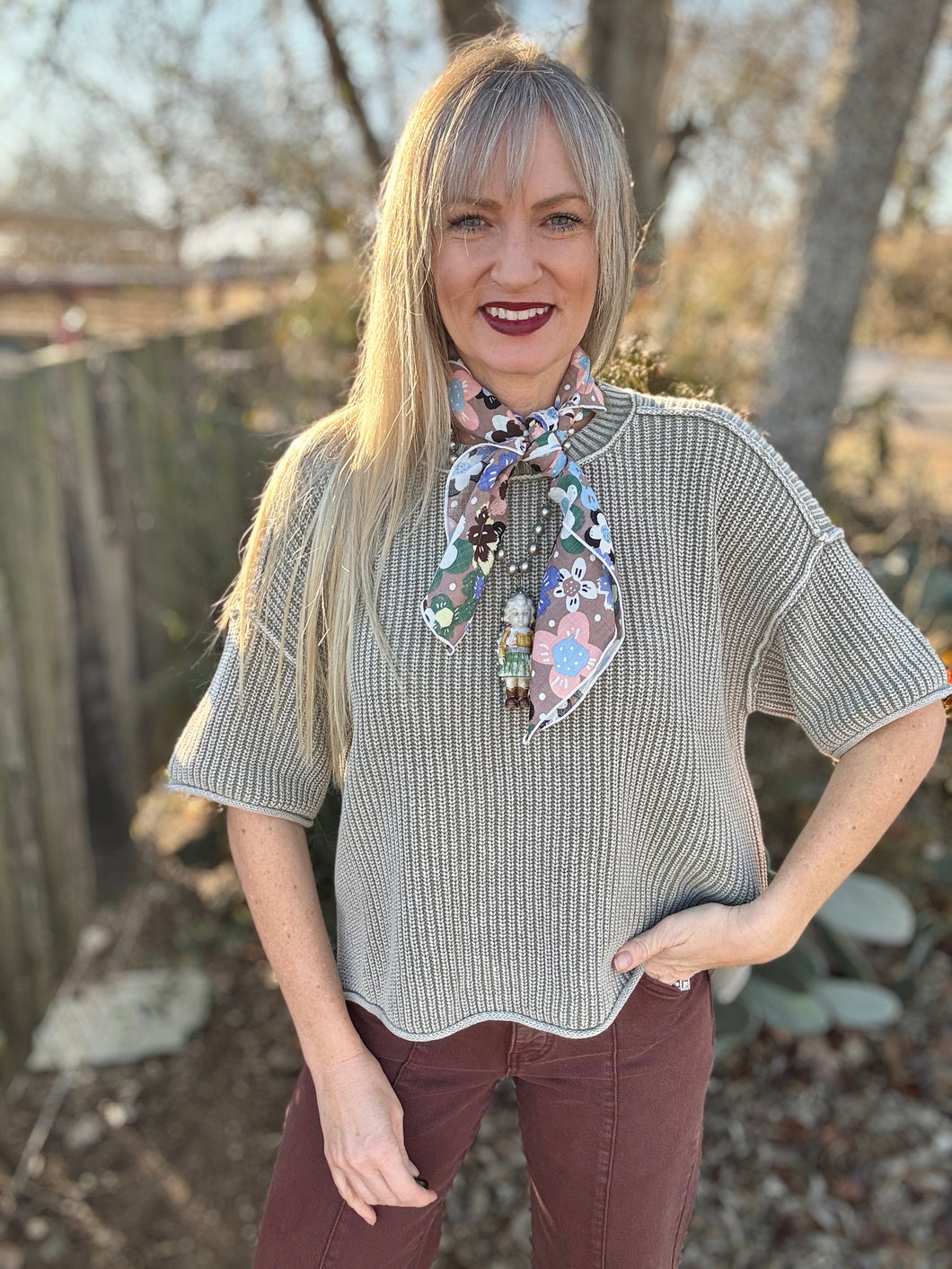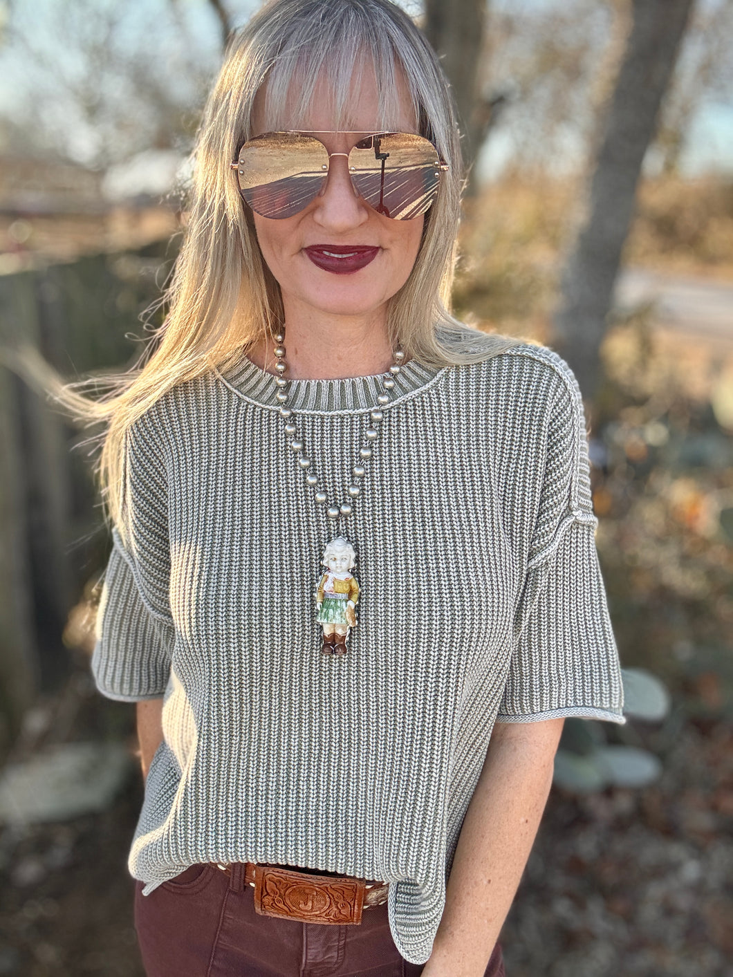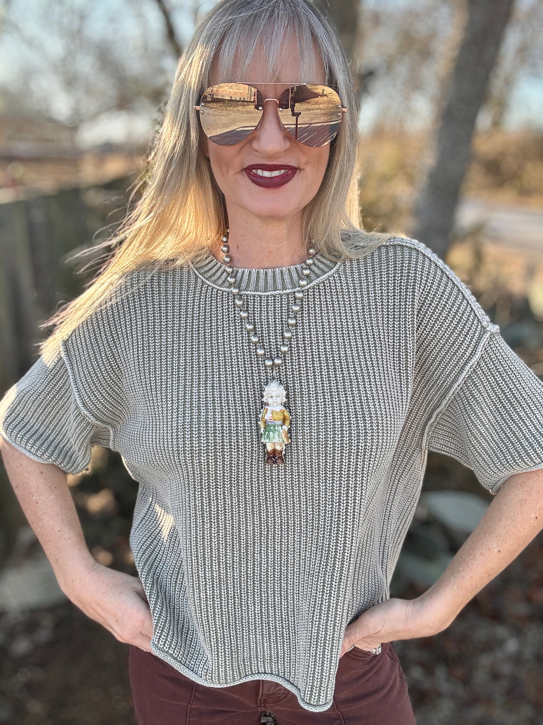 Introducing The Sage sweater—your new favorite essential. This relaxed-fit knitted piece features a gorgeous vintage wash in soft light olive, making it the perfect transitional staple for any season. Throw it over a tee, pair it with your favorite jeans, or wear it solo for effortless style. Cozy, versatile, and undeniably chic, this sweater is ready to become your go-to grab-and-go piece.
